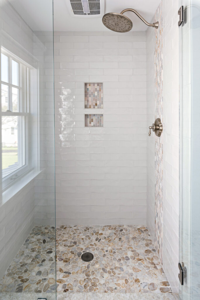 Built-in shelving is both a practical and stylish way to add storage to your bathroom. Whether it’s recessed shelves in the shower, a niche for decorative items, or open shelving above the toilet, these details create a seamless, custom look while keeping essentials easily accessible.