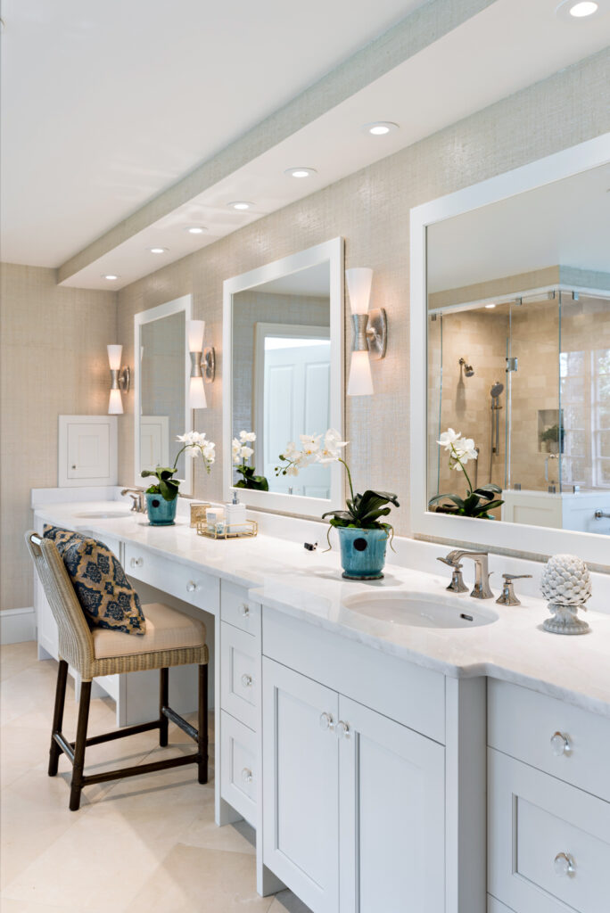 Lighting plays a crucial role in setting the mood of your bathroom. Instead of relying solely on overhead lighting, install sconces on either side of your mirror for a softer, more flattering glow. This setup not only improves visibility for daily tasks but also adds an elegant, designer feel to your space.