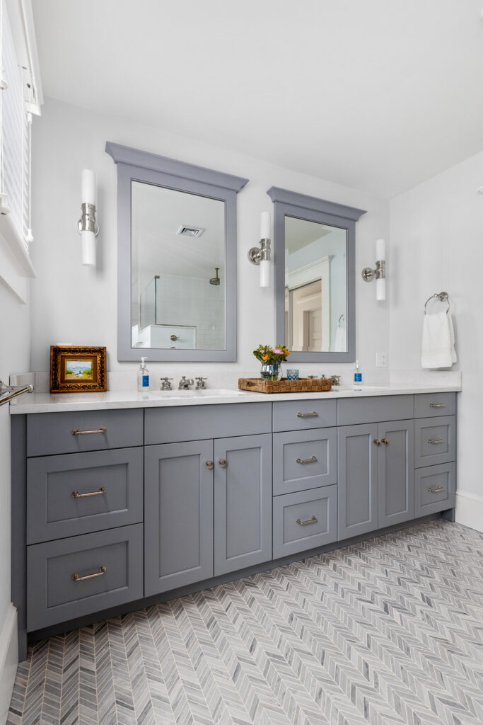 Patterned tile flooring adds character and personality to your bathroom, instantly making it feel more custom and high-end. Whether you opt for a bold geometric design, a timeless encaustic pattern, or a soft herringbone layout, unique flooring can serve as a stunning focal point that ties your whole design together.