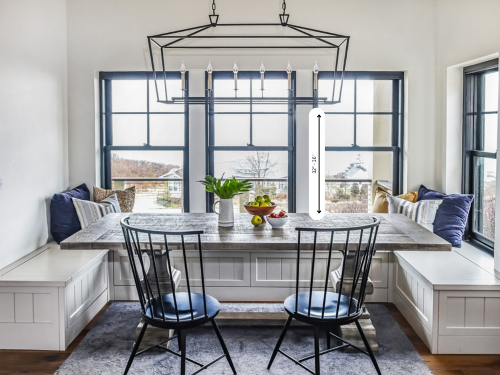 For dining rooms with standard eight-foot ceilings, the recommended distance between the top of the table and the bottom of the light fixture is 32 to 36 inches. This allows for ample clearance while providing adequate illumination and ambiance. If your ceilings are higher than eight feet, add approximately three inches for each additional foot to maintain the same proportions.