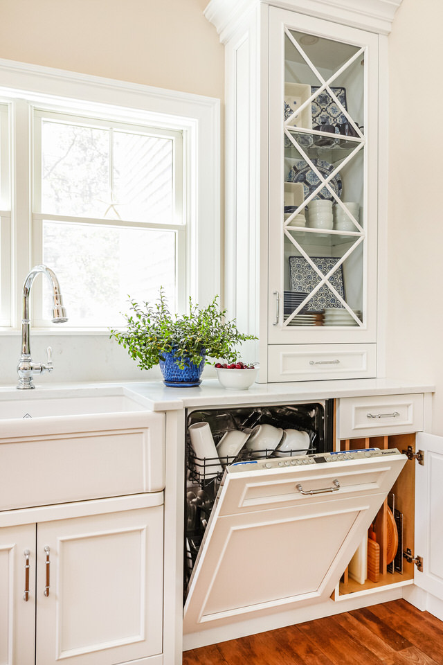 Read more on paneled appliances and hidden storage options here.